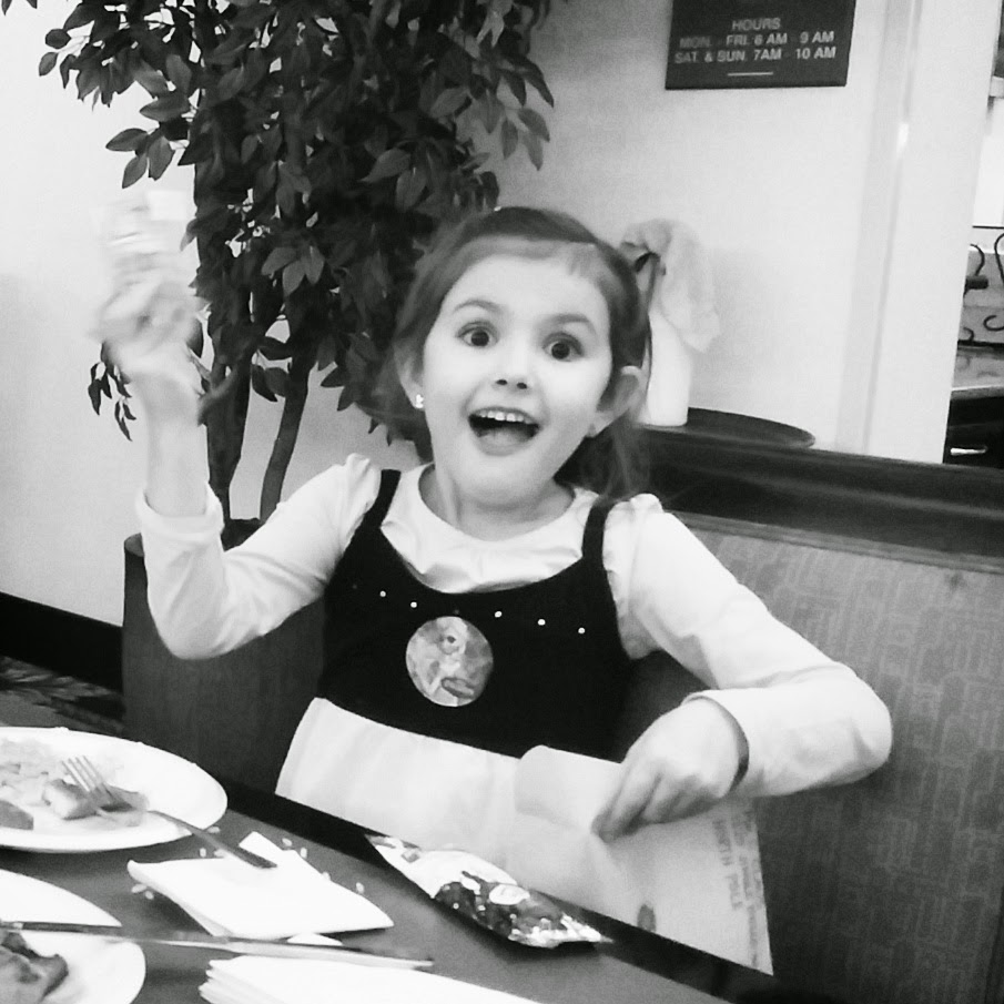 When we got to the hotel we worked on homework, played with tinker toys, and tried to distract ourselves from thinking about Super Why. We decided to go down to dinner in the dining hall of the hotel.