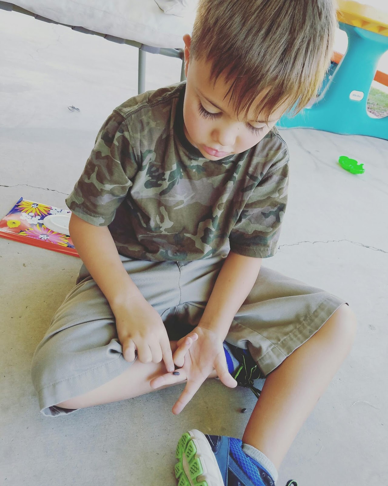 This morning while I was watering the grass, Afton discovered some rollie pollies. (How do you spell that by the way?)